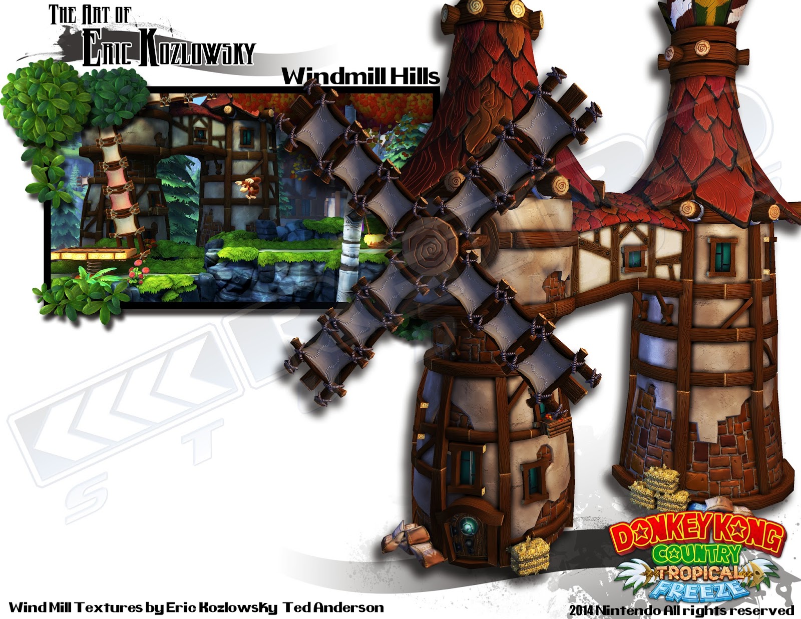 This is one of the very first assets I made for Donkey Kong Country Tropical Freeze. It became the basis for all of the structures in the Mangrove Island, I made the initial textures and then Ted Anderson went over and did a color pass on top of them.